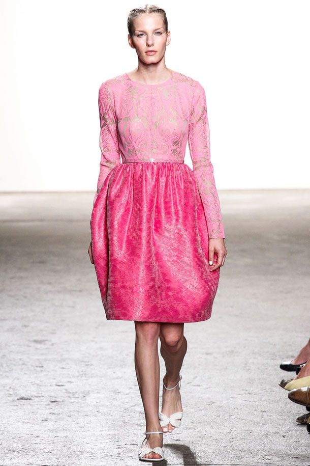 Spring 2013 is a another trip back in time, opening with Jackie O. inspired shifts and cupcake dresses fit for a retro catwalk through whitewashed benches double lining the studio.