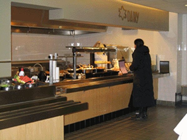 Kosher Café offers delicious meals in a friendly environment that is in a convenient location for NYU students. Meat dishes are served Monday, Wednesday, Friday and Sunday. Daily meals are served on Tuesdays and Thursdays. Special features include an omelette station, cereal bar and pizza.