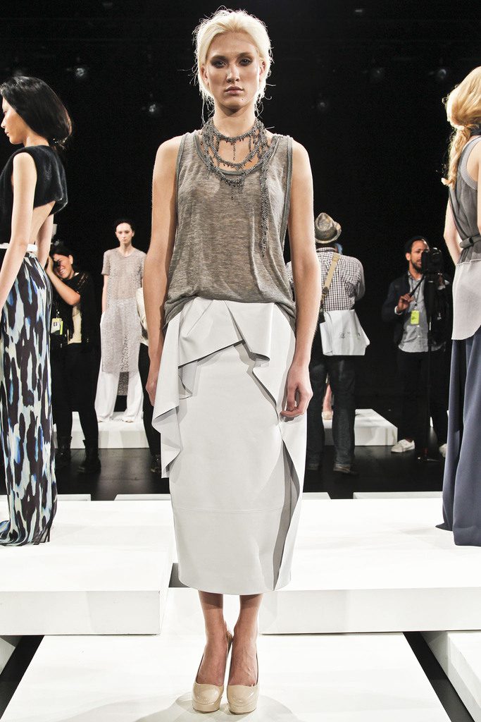 Insouciance, the Spring/Summer 2013 collection by designer Brandon Sun, demonstrates a true artistry and craft for carefree and sophisticated style. Sun’s presentation in The Box at Lincoln Center showcased twenty fresh-faced models.