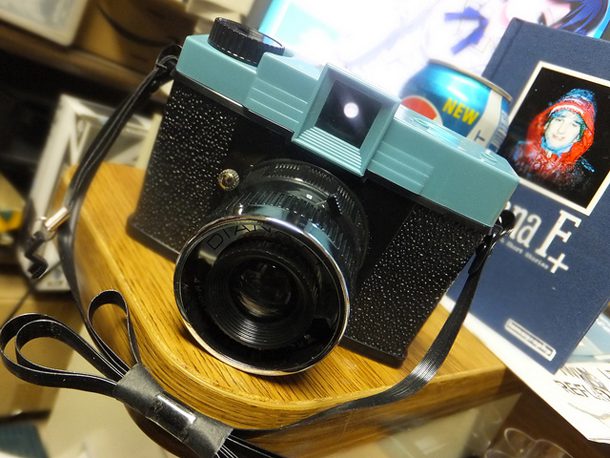 Brincefield’s clone reflects this mentality. By covering the surface in thick, silver spikes and studs and attaching a double silver and blue chain shoulder strap, his Diana F+ resembles a purse more than a camera.