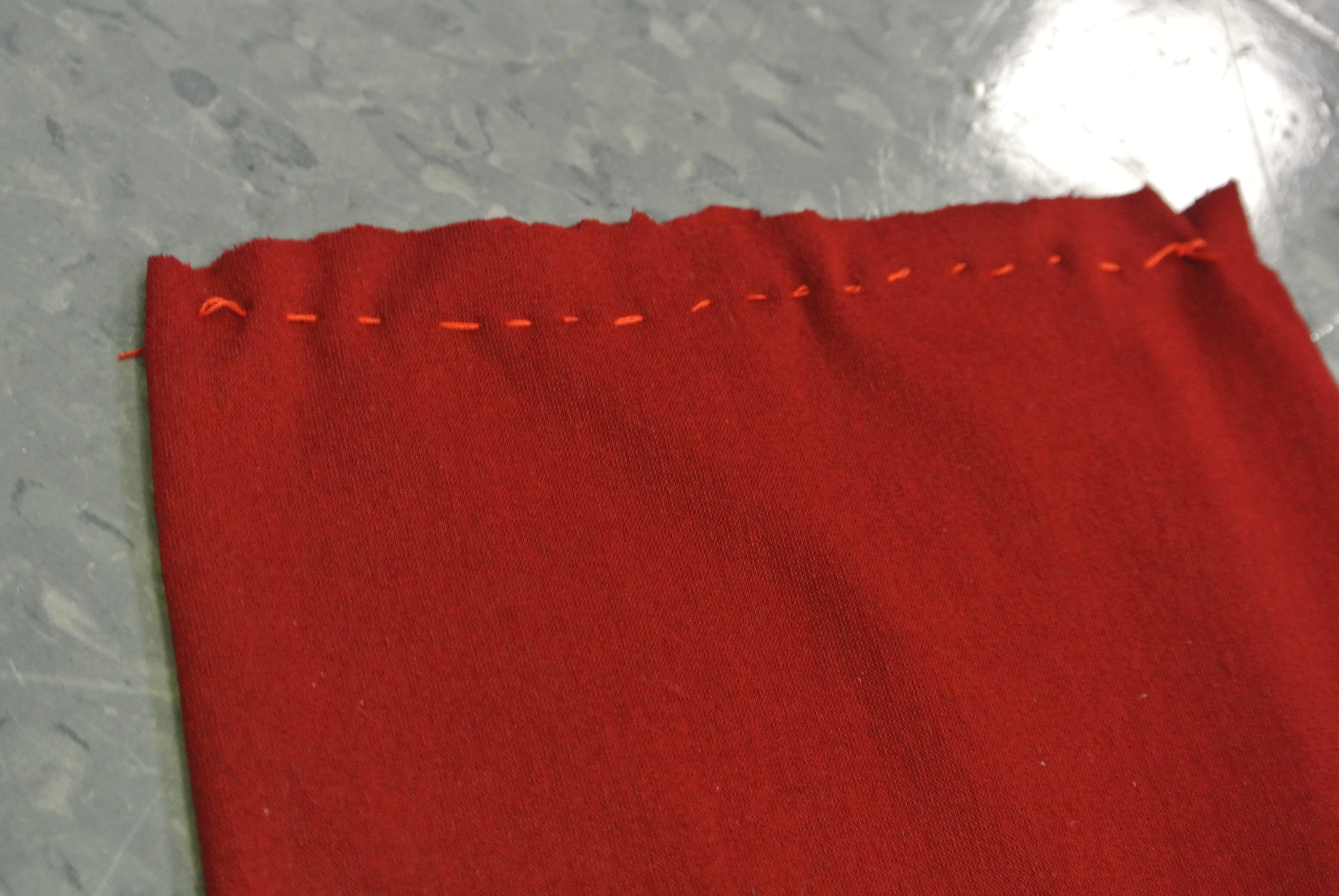 6. Remove the hair tie and fold the fabric vertically in half. Sew each end with the needle and thread.
