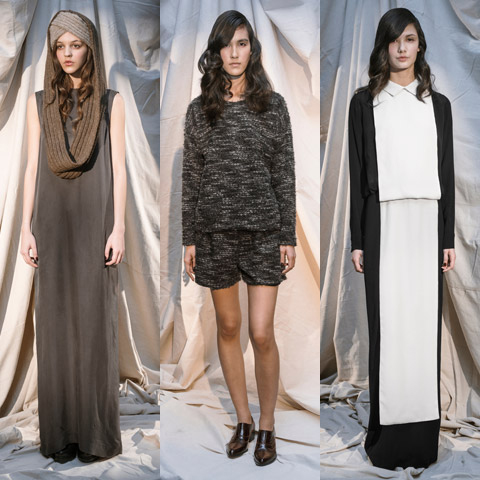 Upon stepping into the room where Suzanne Rae Pelaez showcased her Fall/Winter 2013 collection, viewers suddenly felt calm as they took in the neutral palette and organic shapes of the unadorned pieces.