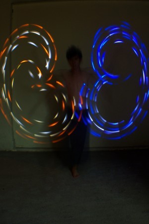 Act: GLOW-FLOW, a glow performance with glow-wands, fans and a unicycle.
