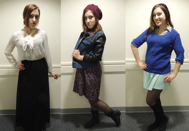 Short, breezy skirts might seem like the ultimate nightmare when it’s below freezing, but these can be adapted for the cold. Make it preppy with knee-high socks over pantyhose and a chunky knit sweater over a collared button-down shirt. Finish the look with patent ballet flats or Mary Janes to emphasize the prep, or winter boots to play it down. Top it off with a headband. Bonus points if it has a bow or gems to polish up the ensemble and add a dose of personality.