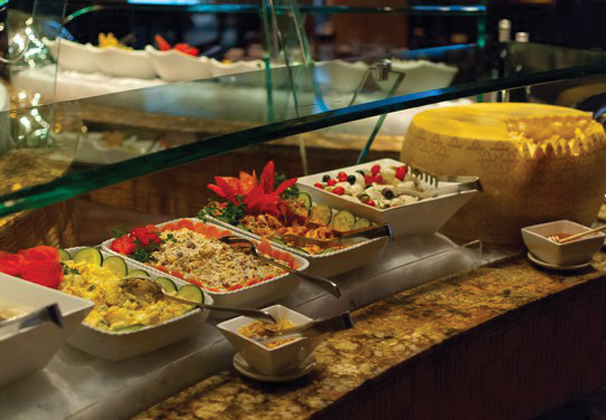 A traditional Brazilian Riodizio, the elegant Churrascaria offers a delicious and entertaining evening. The salad and appetizer bar is fully stocked, all-you-can-eat meat is served directly at the table and desserts are chosen off a roaming dessert cart.