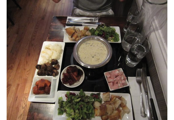 Gather your friends around the pot for a delicious fondue dinner at the French-inspired Taureau. Begin your meal with a creamy cheese blend, move on to hot oil for cooking meats and vegetables, and finish off with a large pot of rich chocolate.