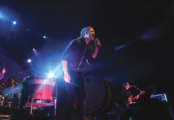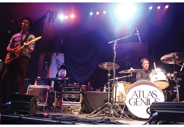 Following Nico Vega’s performance, men in white jumpsuits and masks, presumably the members of Atlas Genius, took the stage and began to tune their instruments. After tuning, the Australian Jeffery brothers and English keyboardist Darren Sell re-emerged, now smar-tly dressed in button-down shirts with elegant ties. Frontman Keith Jeffery wore a fedora.