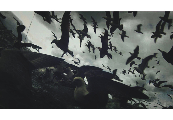 The camera does not hesitate — it moves hanging on a chain that draws a net out of the water and into a pile of dead fish facing imminent beheadings at the hands of the fishermen. The stellar, deep sound quality heightens the sense of exhilaration. The natural ambiance of the ship creaking, fish flopping and birds flapping their wings as the viewers are thrust in an out of the water with the camera all create a captivating score.