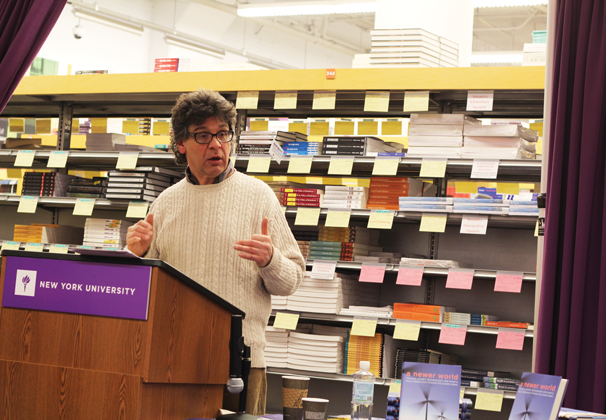 The intersection of policy and climate change led the conversation at the NYU Bookstore’s author reading yesterday. Adjunct professor William Hewitt, who teaches climate change, sustainability and energy, introduced his book “A Newer World: Politics, Money, Technology, and What’s Really Being Done to Solve the Climate Crisis.”