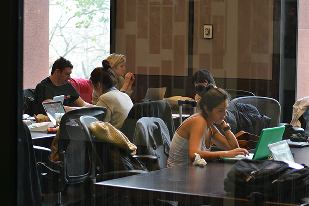 And for a change of scenery, don’t forget that all NYU students have access to the Cooper Union Library on East Seventh Street and the New School libraries on 13th Street. When the campus Starbucks is mobbed, try Everyman Espresso on 13th Street, Cafe Pick Me Up on Avenue A and Ninth Street, or V Bar on Sullivan Street for a good cup of coffee and a cozy study spot.