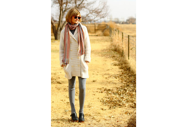 A long cardigan in a soft, thin knit can be the next best thing to pajamas when you’re in the depths of Bobst late at night. Find one that falls to at least mid-thigh, and you can wear it over leggings without looking like the stereotypical college girl -— just be sure to avoid Uggs. Wear it with dainty ballet flats to maintain a slim, graceful silhouette and consider pinning your hair up with a big jaw clip.