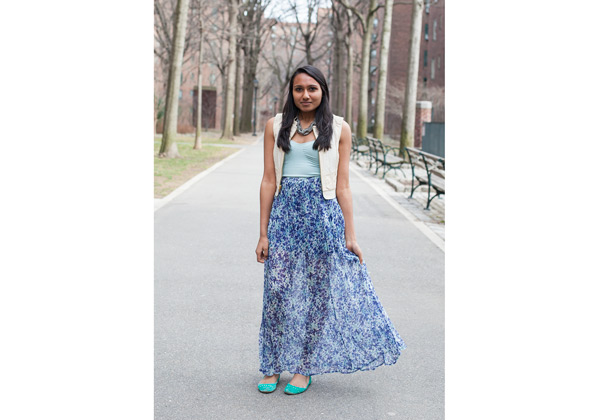 Day: If you don’t want to toughen up your look too much, opt for a vest in a light shade, like white or cream. The lighter color will take off the added punk but still give your look a slight edgy feel, maintaining your girly style. Pair the vest with a floral dress and ballet flats to juxtapose your feminine aesthetic with the roughness of the vest.