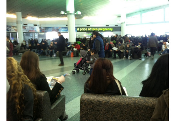 On my way out, I paused to watch the advertisements scroll across big black message boards with measured precision: “Want More HD Channels?” “Carnival. Fun For All, All For Fun,” etc. I almost choked on my juice on that last one, given the fact that the last time I heard about a Carnival cruise it was that one that broke down and became a floating toilet. I almost missed when I paused to pet a dog (the guy holding him jerked the black lab away and told me he was a bomb-sniffing dog and couldn’t be touched — awkward). “Accidents happen and it could be you,” screamed the bright green letters of the final ad. Taking the hint, I went home, giggling.