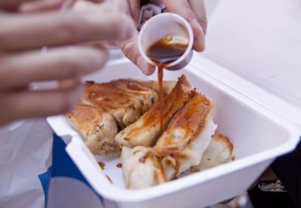 You can get six to eight dumplings under $5 at this joint. Try the popular sesame sandwiches ($2.50) made up of bread filled with meat, cucumber and a delicious sauce.