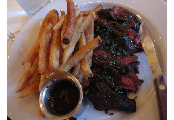 If you enjoy moules frites, Flea Market Cafe is a great place for you. The menu offers three choices of mussels: white wine with shallots and garlic, with Roquefort and Brie or with tomato, garlic, parsley and chipotle pepper ($18 each). All are served with a generous portion of crispy fries.
