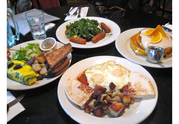 Cafe Orlin is another great place for a cheap, wholesome brunch. Their $14.50 brunch special includes a large serving of eggs, coffee and juice. Also savor their pumpkin pancakes, which come with a delectable cinnamon yogurt sauce ($7.50).