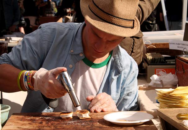 Vendors are serving everything from fried anchovies to pulled pork sandwiches to s’mores to French macarons. Some vendors are offering products to take home, like The 3 Nuts’ gourmet nut butters, such as salted caramel peanut butter, and MOMO, which sells Japanese-style salad dressings.