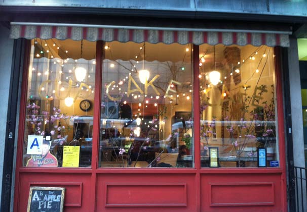 I must provide a word to the wise: the cupcake shop we ended up visiting, the Cupcake Cafe, is the weirdest place on planet Earth. I cannot stress this enough. We were already pretty freaked out by the guy using crutches whom we encountered on the street. He looked a little too much like Santa Claus and screamed crazy remarks to a perfectly innocuous, legally parked Honda Civic. So we were looking for a safe haven.