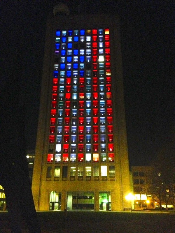 Soon after the incident, the student-controlled lights in MIT’s Green Building, the largest building on campus, lit up the southern facade in red, white and blue in the configuration of an American flag.