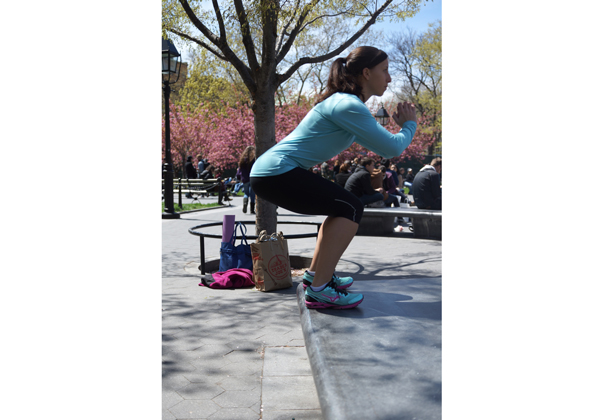 With daily New York temperatures now hovering near 60 degrees and park landscapes blossoming with green grass, spring fever has finally set in. Washington Square Park offers 10 acres of space to engage in a fun fitness routine that challenges the body, provides unlimited breaths of fresh air and forges a stronger bond between the body and the urban outdoors.