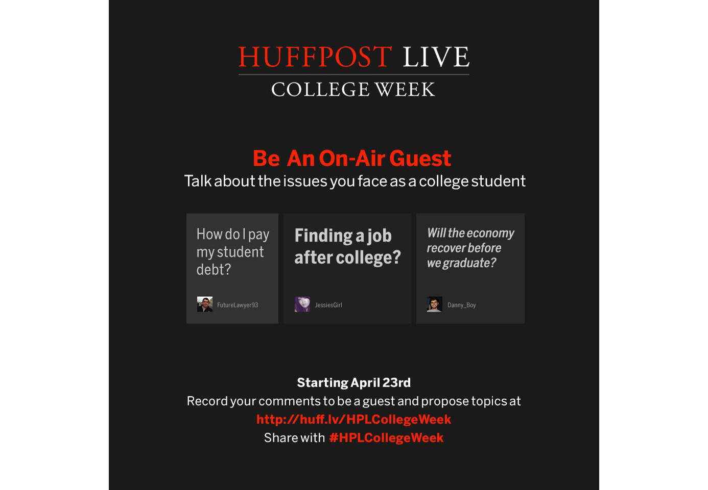 Since April 23, HuffPost Live has been covering a different aspect of college life each day. Tuesday’s discussion centered on “Social Life,” while Wednesday’s focused on “Academic Life.” Today’s will hone in on “Real Life” and participants will decide Friday’s subject.