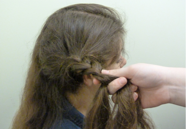 2.) Divide the section of hair on the right side of your head into three equal, smaller strands.