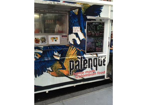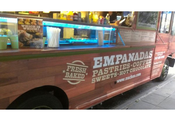 This Colombian food truck serves authentic arepas with a variety of toppings, including Angus beef ($8) and mushed red beans ($6), as well as empanadas ($3) and fried green plantains ($6).