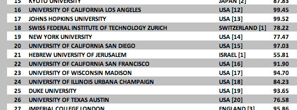- Ranking up: NYU ranked at #19 in the latest Center for University Rankings international university ranking, ahead of Duke University (25), Northwestern University (28) and Brown University (77). NYU moved up 4 spots from last year’s ranking, when the university came in at 23.