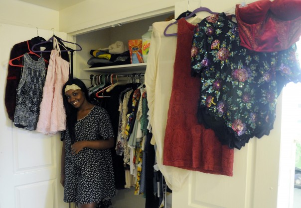 She pulled out a large amount of shockingly patterned circle skirts, saying she wears one every day and that pants are off-limits in her closet. She likes to match them with crop tops, similar to the ones her style icon Janet Jackson used to wear.