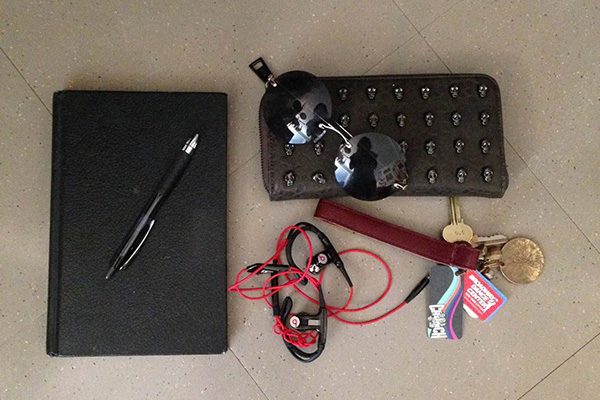 A pewter wallet, detailed with tiny skulls, showcases Richman’s unique fashion sense. A mix of style and practicality, Richman chooses hold-all accessories that can keep up with her fast-paced schedule as she goes around the city.