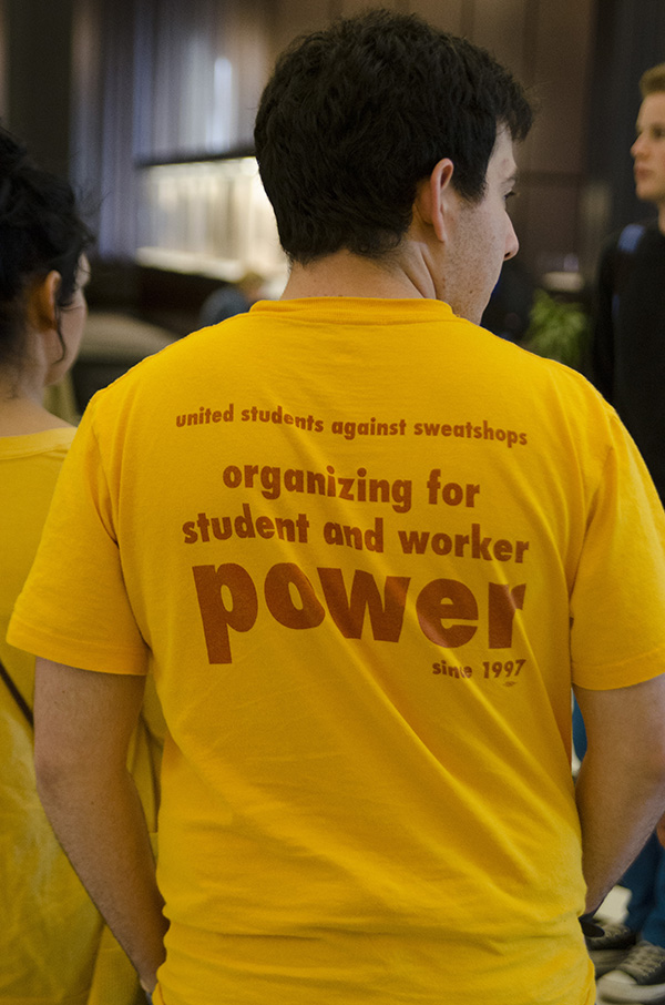 After a short introduction, the group discussed the reasons why the conditions in Bangladesh factories are important to students and what changes they want NYU to make in their code of ethical conduct. The group stressed the idea that NYU students are directly related to this because they wear the clothing that is made in some of these factories. The group said 20 companies with 26 factories in Bangladesh are producing NYU apparel and none of them have signed the accord.