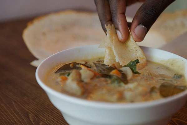 “You can see that many of the options are vegan,” Natarajan said. “We have a dish called theeyal ($13), which is a mix of eclectic vegetables like green bananas, yams and eggplant. We have keerai masiyal ($13), which is spinach with lentils.”