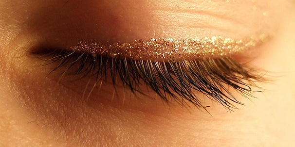 Make your eyes pop with a swipe of glitter eyeliner. To create a glam look that is not overdone, start with a basic black liquid liner, applied in a cat eye shape. Then, use the glitter eyeliner to trace a thin line across the top of the black liner. The glitter will draw attention to your eyes without looking too clown-like. Urban Decay carries a line of glitter eyeliners in a variety of colors. Experiment with gold, silver or any other neutral shade.