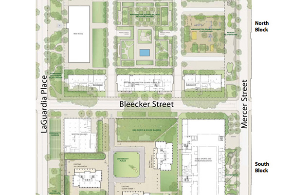 The strips of parkland in question were those between West Third Street and Bleecker Street along Mercer Street; the strip between West Third and Bleecker along La Guardia; and the La Guardia Community Garden site, said university spokesman John Beckman.