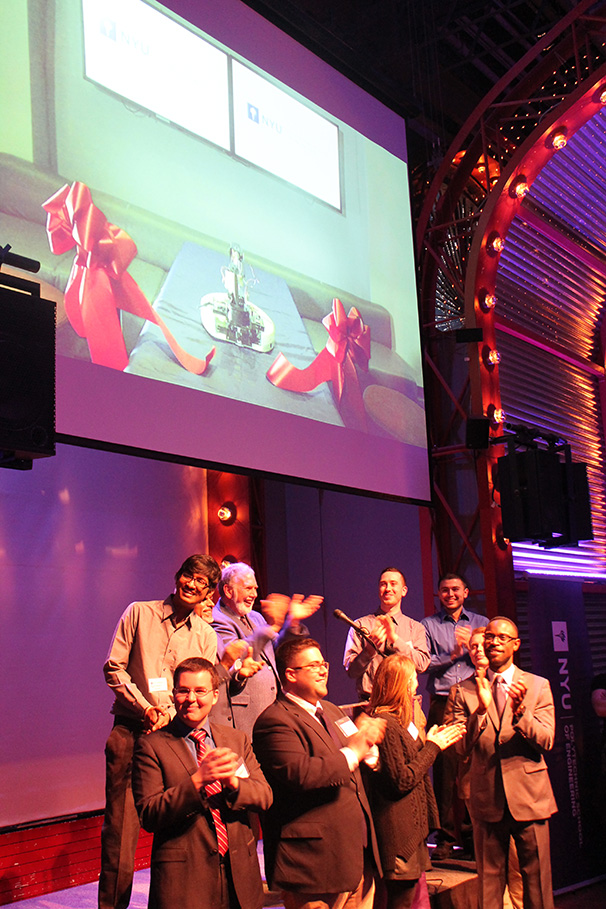 Following the speeches, students and alumni from both the Washington Square campus and the engineering school accompanied Sexton and Sreenivasan back to the podium for a ceremonial ribbon cutting. Attendees watched a video of the ribbon being cut on Poly’s Brooklyn campus by a robot developed at Poly’s Mechatronics and Controls Lab.