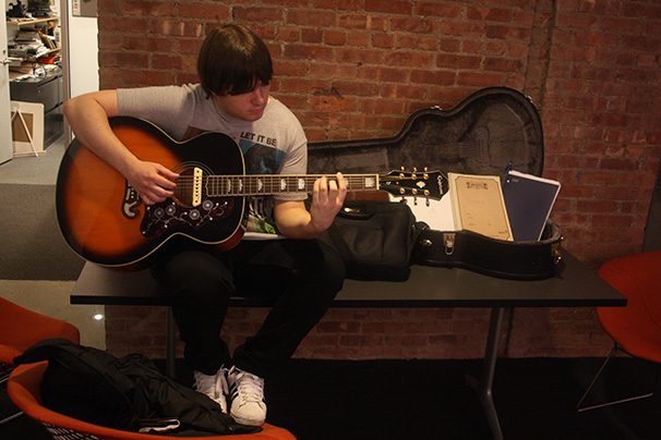 While being a talented guitarist, Weiss also plays piano and drums. He often carries his drumsticks with him and practices in his free time. “Sometimes I carry them around to play drums during rehearsals,” he said. His rehearsals usually take place in his Palladium dorm room or the Kimmel Center for University Life practice rooms.