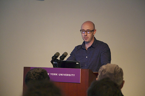 Nicholas McGeehan of the Human Rights Watch, author of a forthcoming HRW report on conditions for migrant workers at NYU Abu Dhabi’s campus and within the city, gave a presentation on Feb. 26 at the Kimmel Center for University Life.