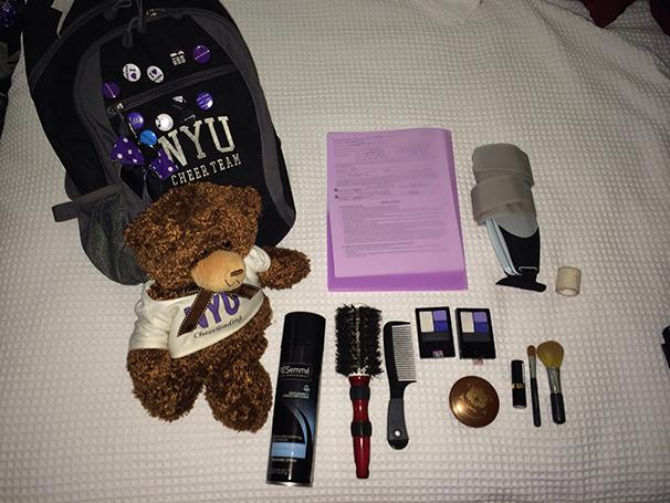Brown has cheered throughout her four years at NYU and attended the annual NCA National Championship in Daytona Beach, Fla., last week. For the championship, 19 cheerleaders competed against collegiate teams from all over the country. Out of the 10 teams, the University of Michigan ultimately took first place, with NYU’s team coming in ninth. Brown shared which essentials she carried in her backpack for the competition.