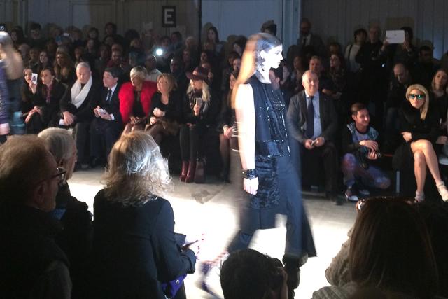Waiting anxiously for the next collection from Italian designer Angelo Marani could not have been a more pleasant experience. From the sensual red mood lighting to the comfortable piano music, the atmosphere was clearly one for the audience’s pleasure. And from the first opening coat in classic black adorned with sheepskin fur to the final dress of chiffon that bounced from the weight of sequins and pearls, Marani gave every model the iconic appeal of his sex symbol muses.