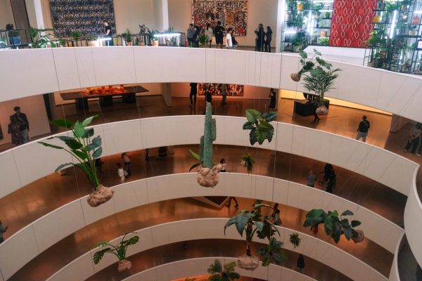The Guggenheim hosts two performance spaces, “Sanguine,” a temporary piano installation on the top ramp hidden by plants and shelves for more intimate performances, and the rotunda stage on the ground floor for larger audiences where the Clive Davis students will perform.