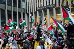 The protest, organized by pro-Palestinian group Within Our Lifetime, began at around 4 p.m. at the News Corp. headquarters in Midtown — which houses Fox News, the New York Post and the Wall Street Journal — to condemn media portrayal of the war in Gaza. Attendees chanted “Everytime the media lies, a neighborhood in Gaza dies” while holding signs with phrases such as “THEY CAN’T KILL THE STORY.”